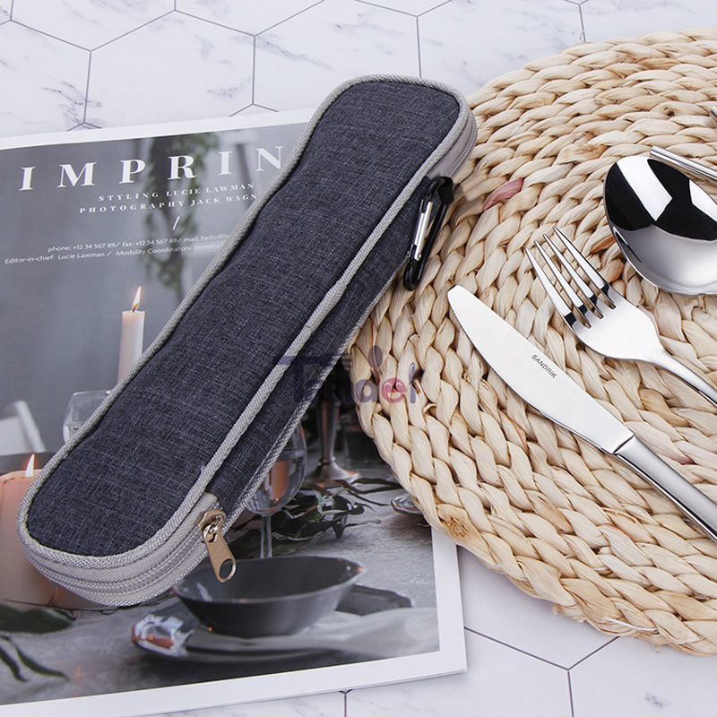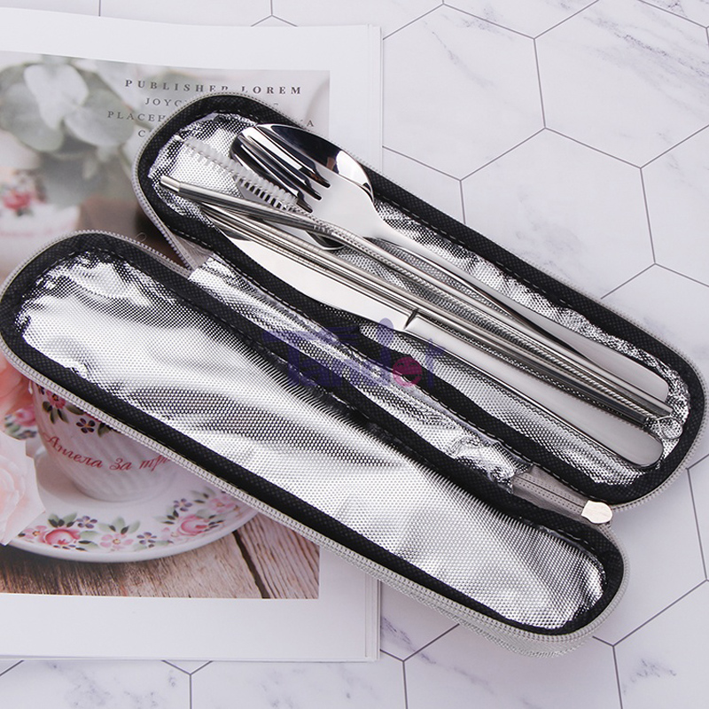 Bærbart rustfrit stål camping rejse bestik sæt med taske